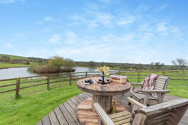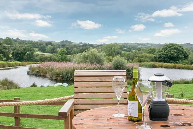 Guests also have access to shared amenities, including a boating lake, a covered cooking area with a pizza oven, and a shared hot tub, which can be booked upon arrival.