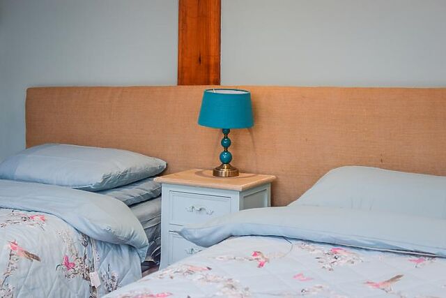 The spacious lounge includes comfortable seating, a cosy electric fireplace, a Smart TV and DVD player, CD/Stereo, Books, Games, Magazines and Jigsaws. The ground floor en-suite bedroom has twin beds, TV, dressing table, plenty of storage space and a large walk-in shower, which is ideal for guests who have accessibility needs.