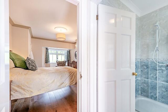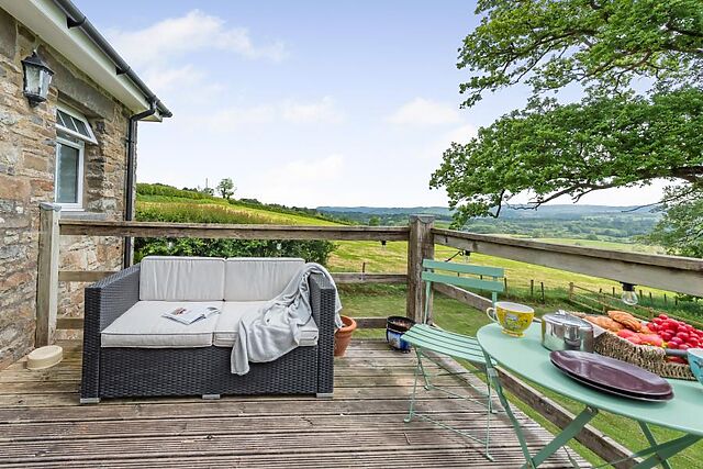 When it’s time for bed, get cosy under the covers of the sumptuous king-size bed before a refreshing shower in the stylish shower room. The living space extends outdoors with outdoors sofas on the terrace and lower level, and a hot tub tucked beneath the terrace with far-reaching country views.