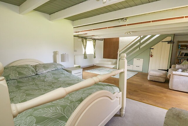Upon entering the property, you will be greeted by a spacious, ground-floor king-size bedroom complete with a Smart TV for your entertainment. The bedroom also boasts an en-suite, fitted with a shower, basin, and WC, providing a private space to freshen up each morning.