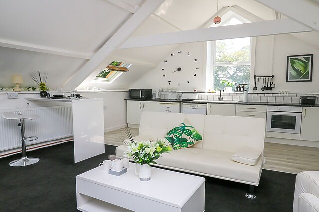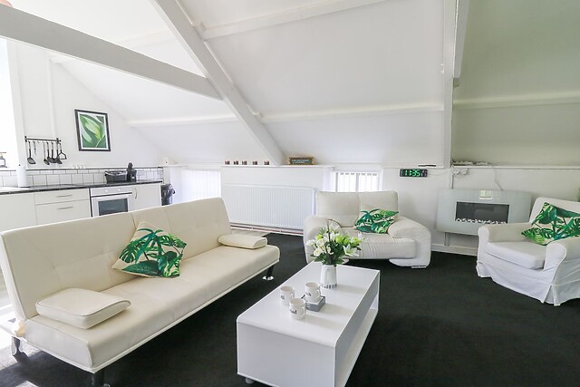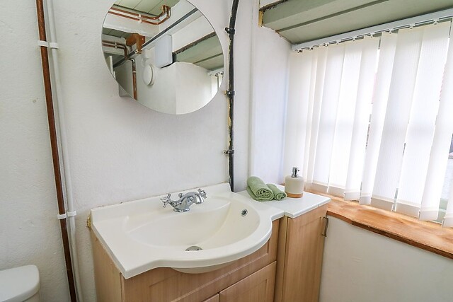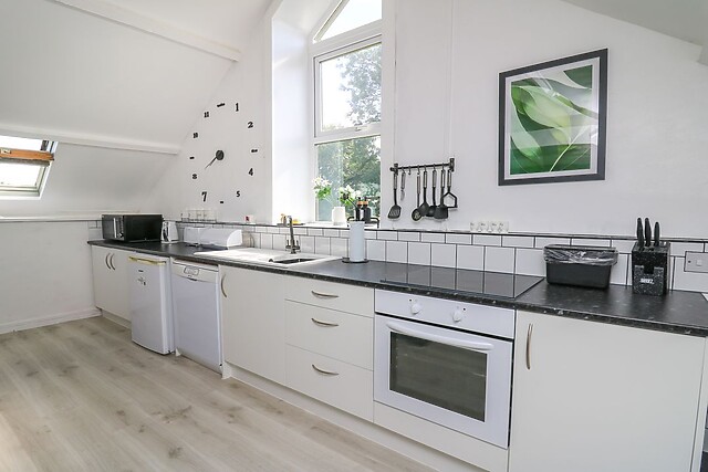 Venture up to the first floor to discover the heart of the home; an open-plan area housing a well-equipped kitchen, a dining room with seating for two, and an inviting sitting room. Here, you can prepare your favourite meals, enjoy intimate dining experiences, and unwind in front of the Smart TV after a day of exploring the local area.