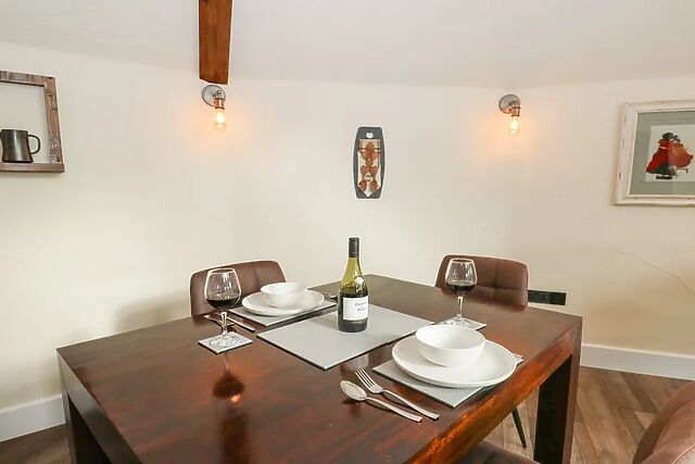 Exposed beams overhead and warm-toned wooden flooring underfoot create a sense of warmth and character, while artwork on the walls adds a personal touch. The kitchen, dining and sitting areas flow together seamlessly, making it easy to chat with your partner or enjoy music while you cook.