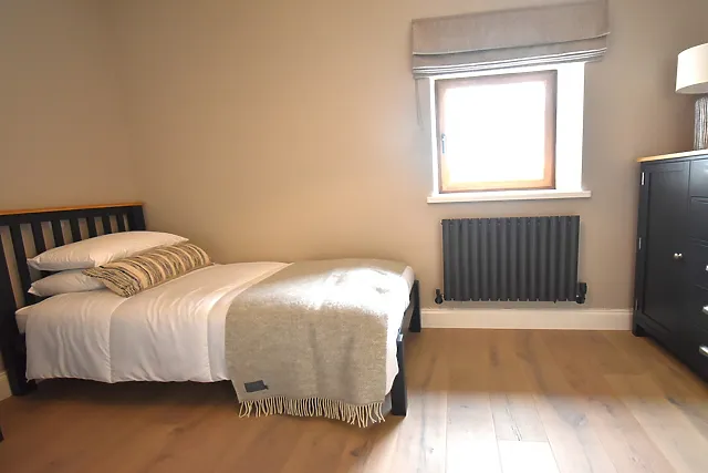The accommodation boasts two cosy bedrooms, a master suite with a king-size bed and a twin room, ensuring a restful night's sleep. The contemporary family bathroom adds a touch of indulgence with its roll-top bath and walk-in shower.
