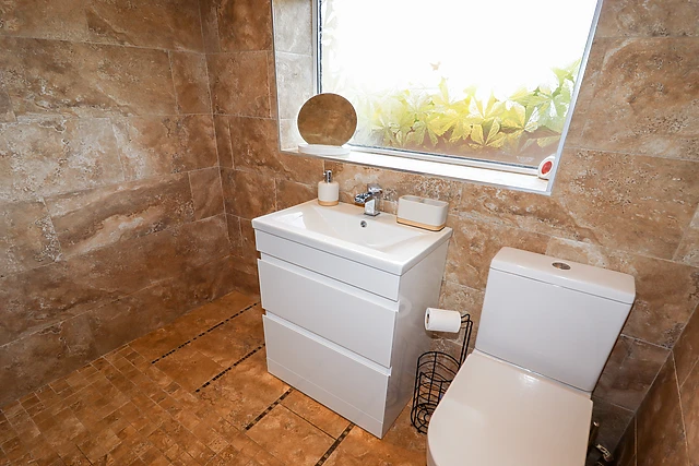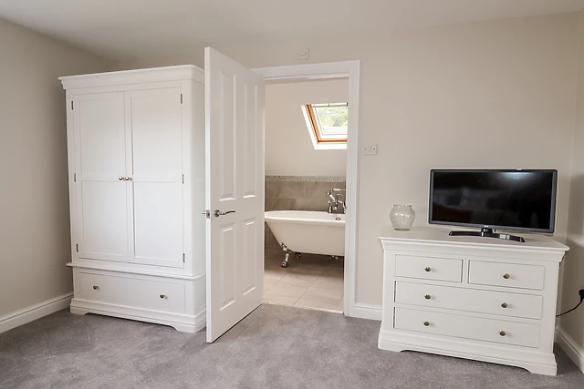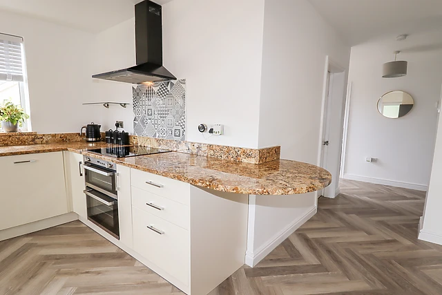 When mealtimes call, enter a light and airy kitchen/diner, a lovely social hub for guests to enjoy, offering ample amenities tucked away into contemporary furniture with granite work tops, and a space for guests to enjoy a hearty meal. From here, access the rear garden where there is an elevated seating area allowing for countryside views across the valley and, down a flight of stairs, there is a lovely, enclosed garden where guests can make the most of the sunshine or enjoy an opulent dip in the hot tub.
