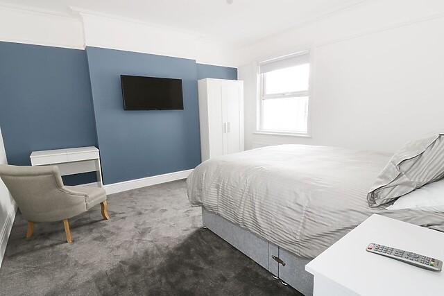 The property boasts six beautifully presented bedrooms spread over three floors. On the-first floor, you'll find three king-size bedrooms, each fitted with a Smart TV, and a double bedroom.