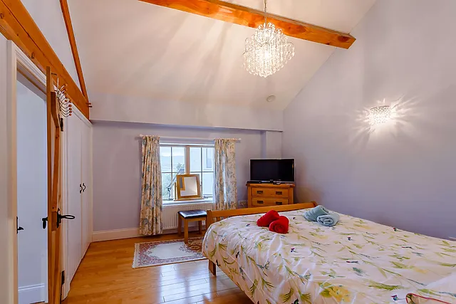 The accommodation boasts two well-appointed bedrooms, one with a king-size bed and an en-suite shower room, and the other with twin beds, both offering lovely views.