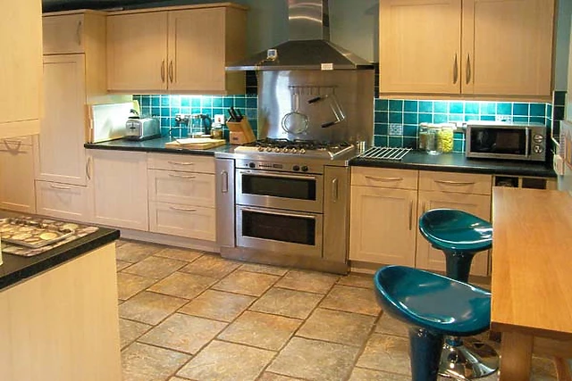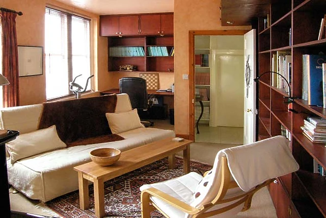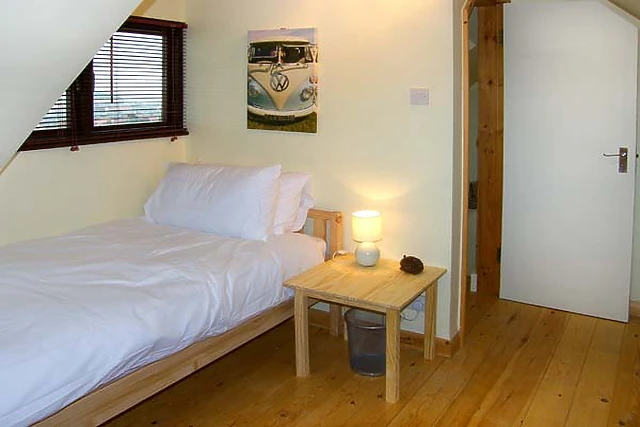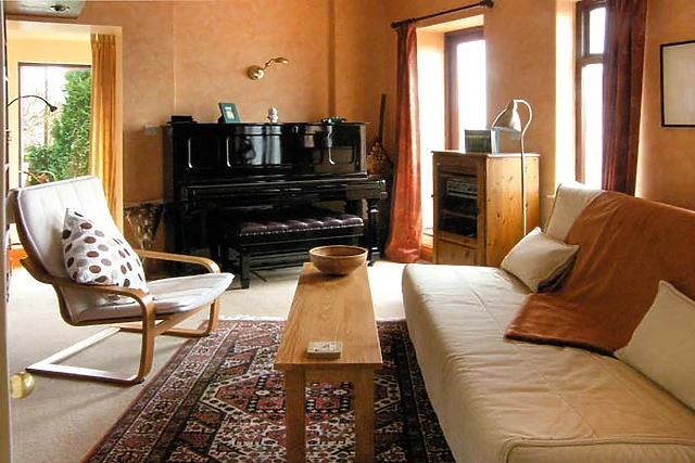 The ground floor offers a light and airy sitting room with open fire, and a reading room with study area, a sofa bed, a piano for the musically inclined and exercise bike for the more energetic! Doors lead out onto a balcony where you can enjoy the distant sea views and relax with a refreshing drink whilst soaking up the sun.