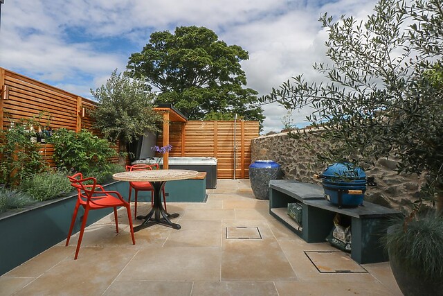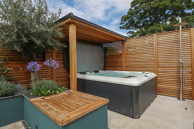 The bespoke oak staircase and joinery throughout the cottage add an extra layer of craftsmanship and heritage. Outside, the suntrap courtyard garden – with the medieval town walls almost within touching distance – is an oasis of calm, complete with a hot tub, outdoor shower, and a Kamado-style BBQ with a Welsh slate preparation bench.