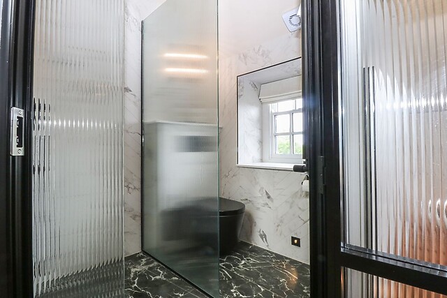 With branded appliances including a double oven, washer-dryer, fridge-freezer, full-size dishwasher, and drinks chiller, the kitchen is ideal for preparing leisurely meals or winding down in comfort. The kitchen-dining area is finished with French limestone flagged floors and underfloor heating.