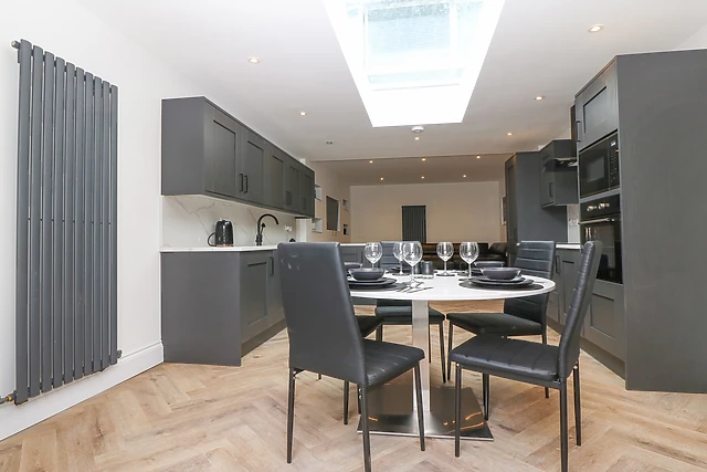 Moving through the apartment, you will find two beautifully appointed king-size bedrooms, each equipped with Smart TVs for your entertainment. Lastly, step outside to the enclosed rear garden, complete with a patio, furniture, and the highlight of the property - the hot tub, ideal for some well-deserved pampering.