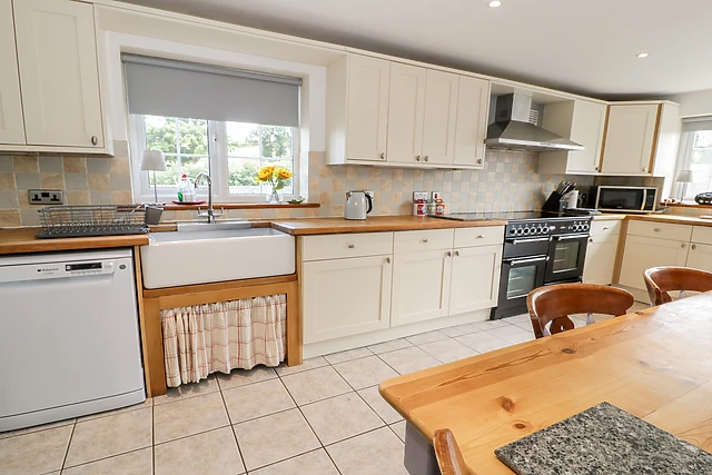 The cottage comfortably sleeps up to 10 guests across five tastefully decorated bedrooms, making it suitable for large families or groups of friends.