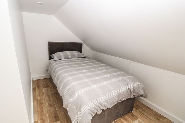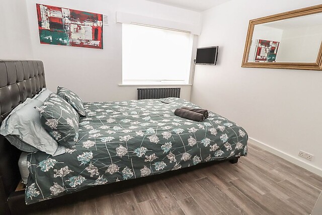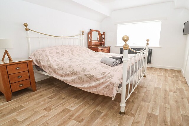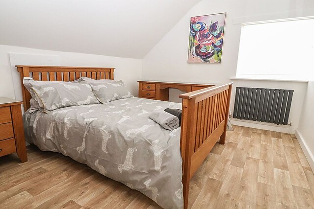 Beyond this, a king-size bedroom awaits, boasting views over the garden, with a wardrobe, and a TV to create that home-from-home feel, across the way from the family bathroom, which is finished to a quality standard, with a walk-in rainfall shower. Before a good nights sleep, why not cosy up in the snug, with its sliding doors leading out to the enclosed rear garden should you wish to continue the evening there, or just relax in front of the TV.