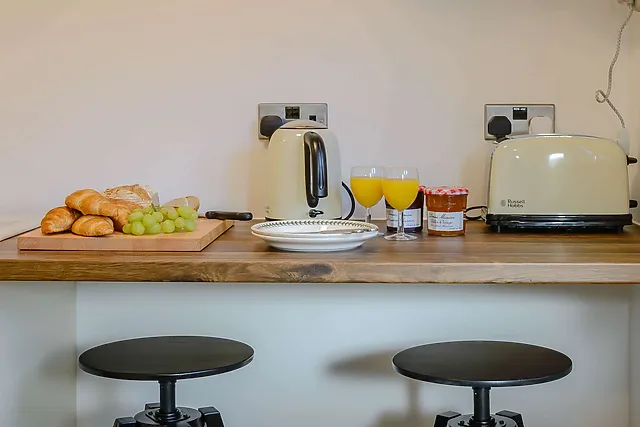 The shepherd's hut is equipped with electric heaters in the bedroom and kitchen area, ensuring a warm and cosy atmosphere throughout your stay, regardless of the weather outside.