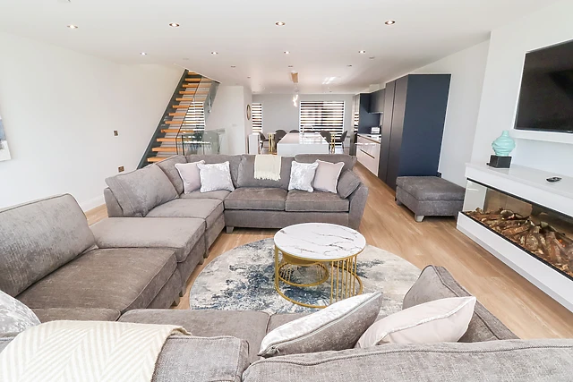 Upon entry, discover a utility space with ample amenities, tucked away into the ground floor, as well as a shower room with contemporary styling and a bedroom with a sitting area and access to the rear garden. Throw open the patio doors and allow the seaside air in, or head out into the enclosed garden to enjoy a soak in the hot tub or a glass of your favourite beverage in the sunshine as your four-legged companions recline on the grass beside you.
