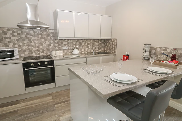 For those who enjoy self-catering, the modern kitchen is well-equipped, and the dining area is ideal for enjoying meals together. Step outside to discover a private patio area with outdoor furniture, where you can unwind and soak in the stunning views.
