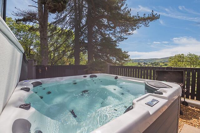 A modern family bathroom completes the first floor. In the enclosed rear garden, you can soak in the hot tub, lounge on outdoor sofas, enjoy a BBQ or simply watch horses and goats grazing in the fields.