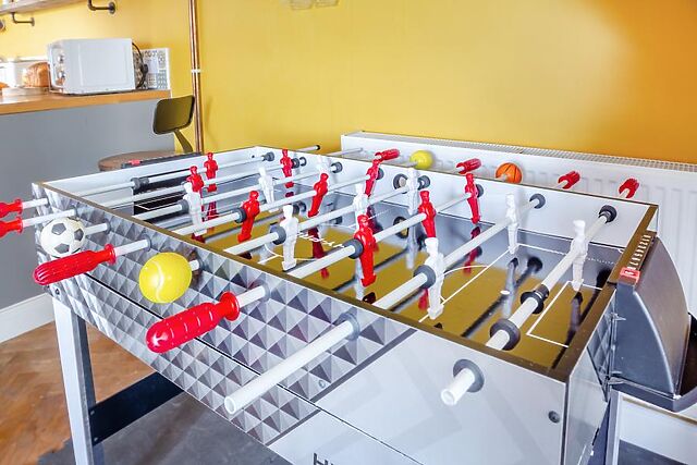 After dinner, unwind in the snug by the wood burner or gather in the games lounge for friendly matches of table football, air hockey or pool. Upstairs, the three bedrooms – two king-size with en-suites and a spacious twin – offer restful sanctuaries, each equipped with a Smart TV.
