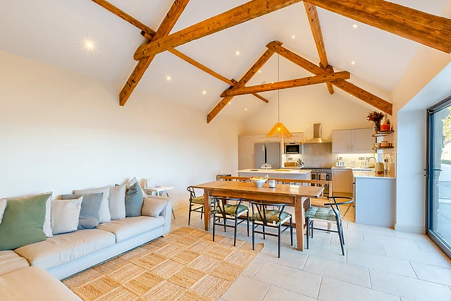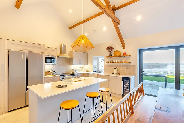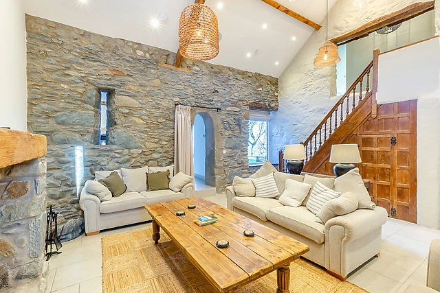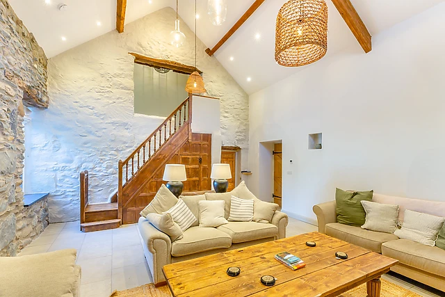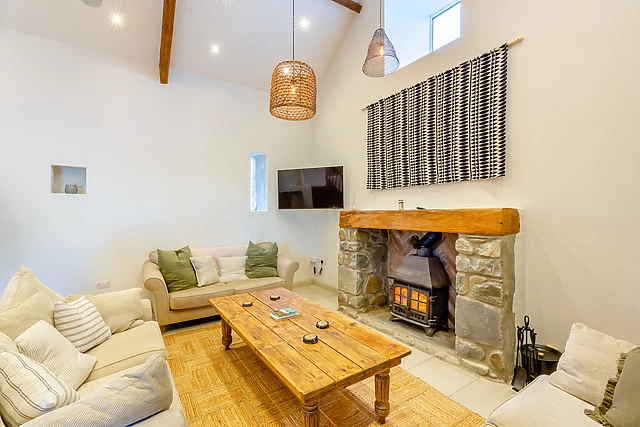 Step inside Ysgubor Maen Y Bardd and you will be met with a beautiful interior, full of original features that create an inviting and tranquil atmosphere. The open-plan living space is the perfect place to gather with family and friends, with a fully-equipped kitchen, dining area and a sitting area, as well as an additional sitting room with woodburning stove, where you can kick-back and relax in front of the flames, or spend a night in watching a movie with a bowl of popcorn.