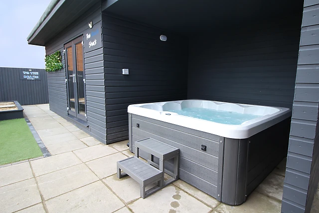 A recently, professionally-constructed outdoor cinema and children's games room, housing a projector, large cinema screen, 20,000+ retro video games and luxury sofa. Also available is a luxury commercial hot tub in an attractive sheltered area offering both privacy and garden views.