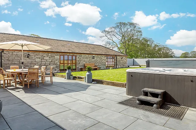 Yes, the accommodation features a luxurious private hot tub, where guests can relax and enjoy the stunning views of the surrounding countryside.