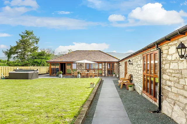 Discover the charm of Beudy Y Plas, a luxurious barn conversion nestled in the serene Vale of Clwyd, boasting breathtaking views of Moel Famau. This single-story haven is perfect for a group of eight, offering four well-appointed bedrooms, each with en-suite facilities, ensuring privacy and comfort for all guests.