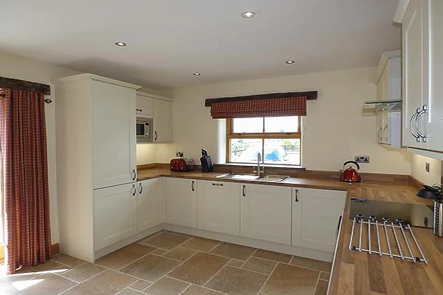 This delightful, quality barn conversion has been finished to a high standard. Entering into the hallway of the property you will find the ground floor twin bedroom on your right, a stylish family bathroom and a bright and airy kitchen with dining area.