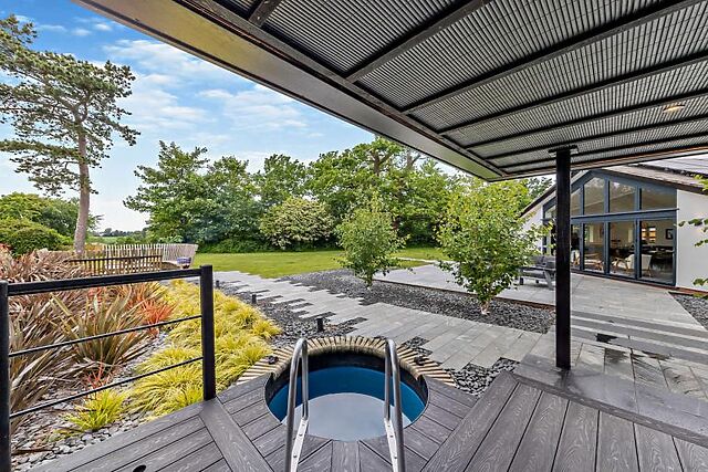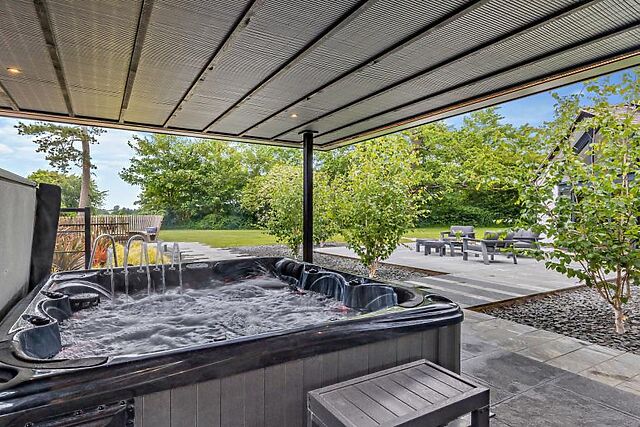 Guests can indulge in the on-site spa facilities, which include a rejuvenating sauna and a refreshing plunge pool, complementing the relaxing experience of the hot tub.