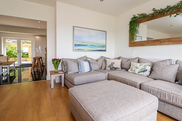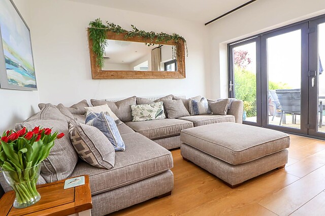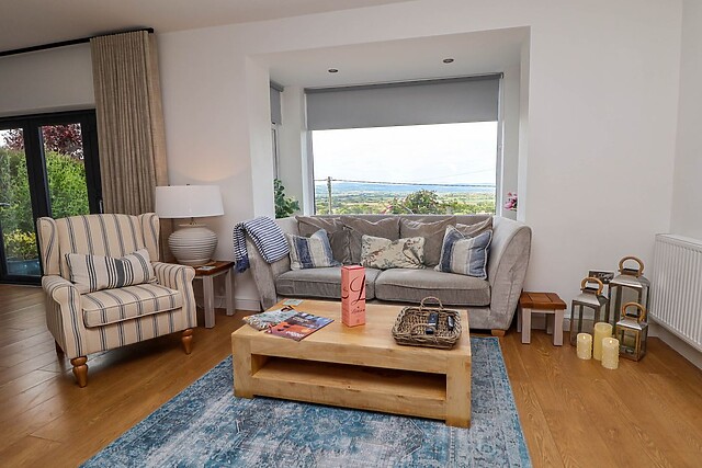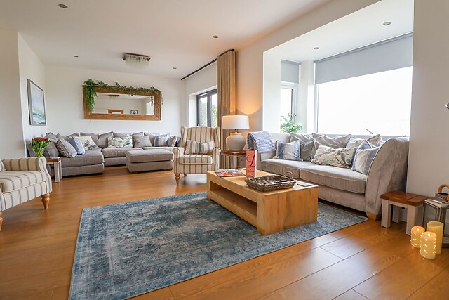 Sink into the plush corner sofa, or choose from one of the inviting armchairs or sofa, all while enjoying the stunning countryside and sea views. The property boasts five well-appointed bedrooms, ensuring a rejuvenating sleep for all.