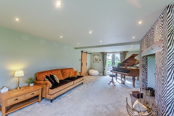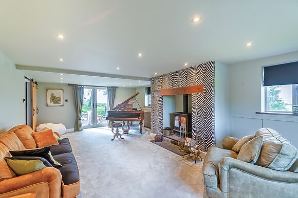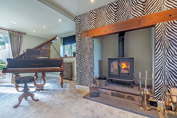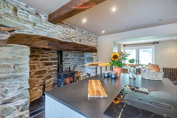 There are two bathrooms plus a separate ground-floor toilet. Two living rooms both have woodburners. The kitchen has a wine cooler, coffee machine and dishwasher.