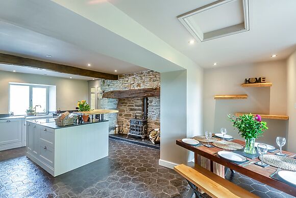Two woodburning stoves keep things cosy and the enclosed garden with firepit and barbecue is perfect for evenings outside.