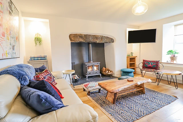 Be spoilt for choice when it comes to relaxing during the evening, with two sitting rooms, each complete with wonderful plush sofas and seating, with a woodburning stove set within the fireplace in one of them, an electric stove-effect fire in the other, along with a large flat-screen TV in both. Beautiful artwork and furnishings add an extra special feel to the property, such as the rustic and bespoke coffee tables in the sitting room, crafted from reclaimed wood, and the locally made throws and cushions in the bedrooms.