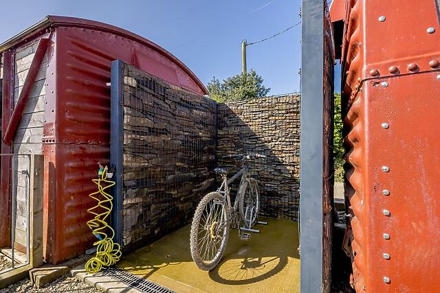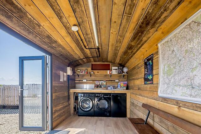 Step inside to find an open-plan living and sleeping area that feels both spacious and intimate. The double bed, complete with a luxurious wool duvet, ensures a snug night's sleep.