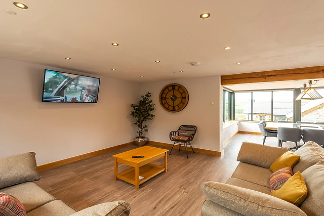 Unwind for the evening within the sitting area within this space or head upstairs to first-floor sitting room, where you will be delighted by the seamless blend of character and contemporary, as well as the plush seating arrangement positioned in front of the TV. Move past the exposed stone-built archway into another sitting area to sink into the L-shape sofa to soak up the views of the lush green fields.