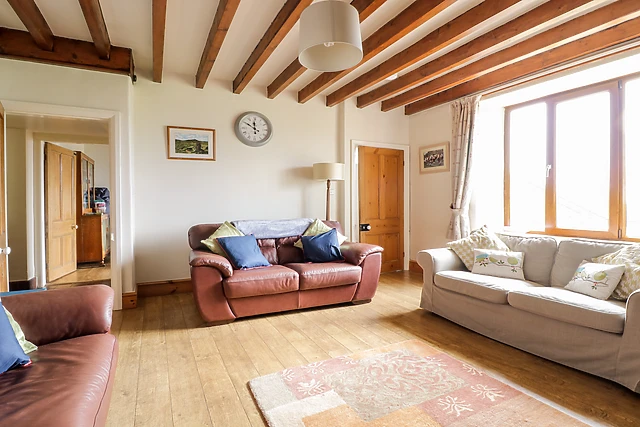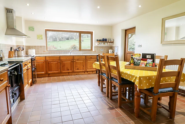 The farmhouse-style kitchen is well equipped and with a large dining table provides a great place to enjoy family meals. There is also an extremely large and useful utility and drying room, ideal storage for bikes and wet weather gear.