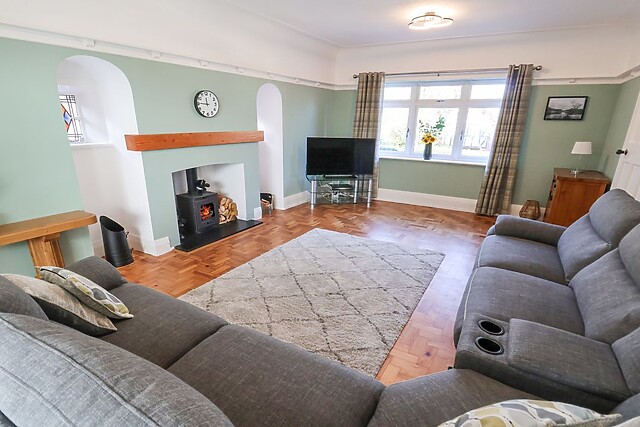 Perfect for families or large groups of friends, this pet-friendly haven features an inviting hot tub, open-plan living, a woodburning stove, and a bar, idyllic for a seaside getaway to Wales. Arrive at this marvelous cottage and be greeted by its grand, welcoming charm.