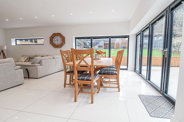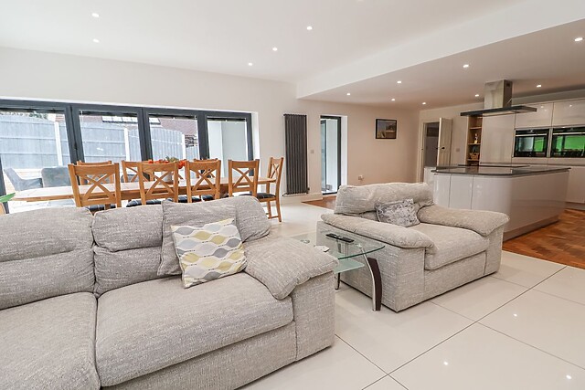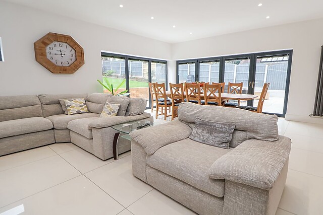 Let conversations flow from the dining area to the large sitting room, where relaxed evenings unfold by the warmth of a glowing woodburning stove - perfect for those crisp, starlit nights. When sunny days beckon, swing open the bifold doors and transform the outdoors into your gathering space.