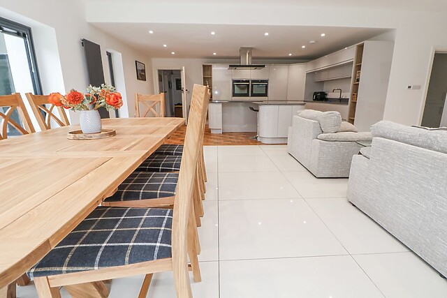 Step inside, and you'll find the heart of the home: a stunning open-plan living space designed for unforgettable moments. Here, the designated chef can work culinary magic in the sleek, contemporary kitchen, while you raise a toast around the dining table, celebrating the start of a memorable getaway.