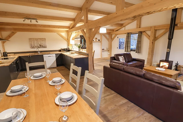 In a well-equipped kitchen, find all the necessary appliances required to ease your self-catered stay, so you can prepare and enjoy meals as a family; during balmier evenings, why not venture outside to delight in an alfresco affair, or settle down at the dining table ready to toast to an unforgettable break. Snuggle up on the sumptuous sofas in front of a roaring woodburning stove as you wind down for the evening, ready to indulge a movie marathon via the Smart TV with Netflix; if you prefer to admire your stunning surroundings a little longer, indulge a soak in the bubbling hot tub and watch as the stars appear overhead.