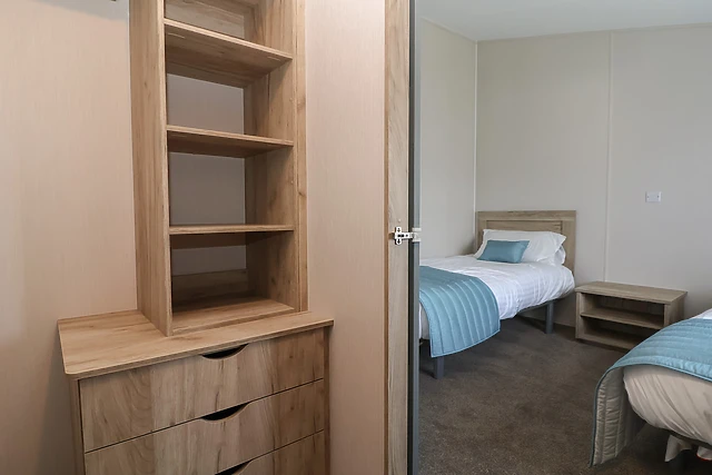 Keep warm and cosy up by the electric fire as you unwind and enjoy the peaceful surroundings of this charming retreat. Step inside the single-storey Lodge 3 and discover two inviting bedrooms, each equipped with a TV for those relaxing mornings in bed.