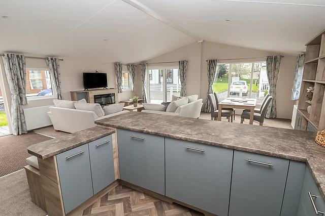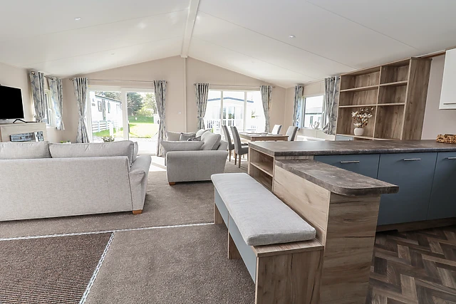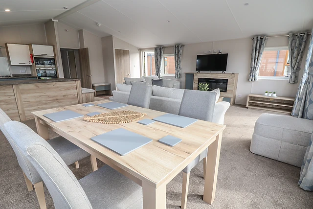 The bathroom offers a relaxing space for you to get ready for the day or take a warm soak to unwind. The open-plan living area is perfect for relaxing evenings, with a well-equipped kitchen, dining area, and a plush sitting area with an electric fire to keep you toasty.