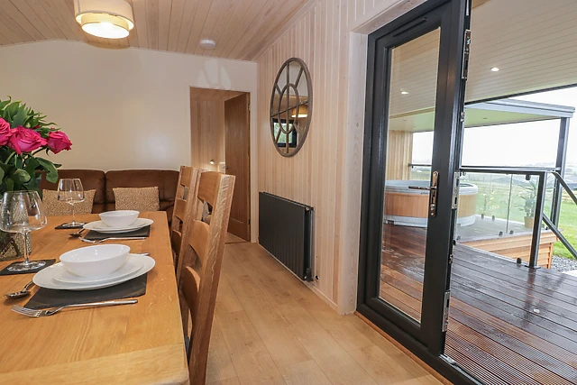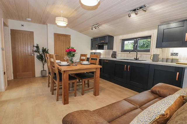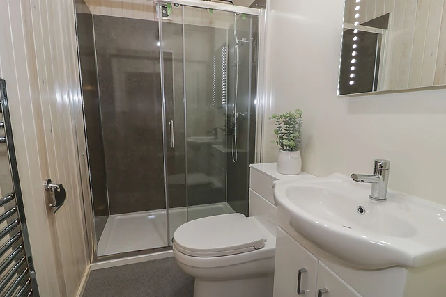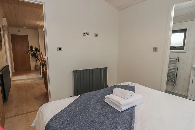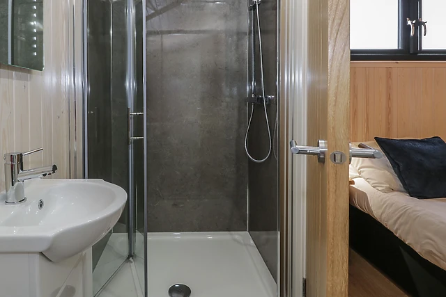 Inside, Math (Lodge 3) provides a haven of comfort and relaxation with two beautifully-appointed bedrooms: one king-size with a Smart TV and en-suite shower room, and a second king-size that can be converted into a 2’6†twin upon request, ideal for children or friends sharing. Refresh yourself in the sleek shower room, which includes a walk-in shower and a toasty heated towel rail.