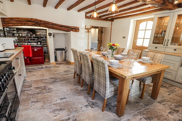 A fantastic base in Denbighshire for exploring North Wales, the property pairs its unique character with contemporary amenities and plenty of space for a family or group of 6's self-catering holiday in North Wales. Ample off-road parking is available for an easy arrival to your rural retreat; be welcomed into a rustic kitchen/diner with exposed beams, farmhouse furnishings and all the essentials, such as an electric range cooker, washing machine and dishwasher.