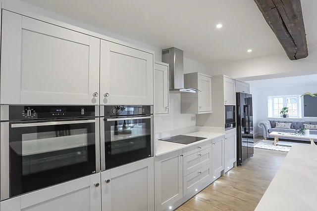 The living spaces radiate warmth and character, with a woodburning stove and underfloor heating creating a cosy atmosphere. The state-of-the-art kitchen and dining area invite you to create and enjoy memorable meals together.