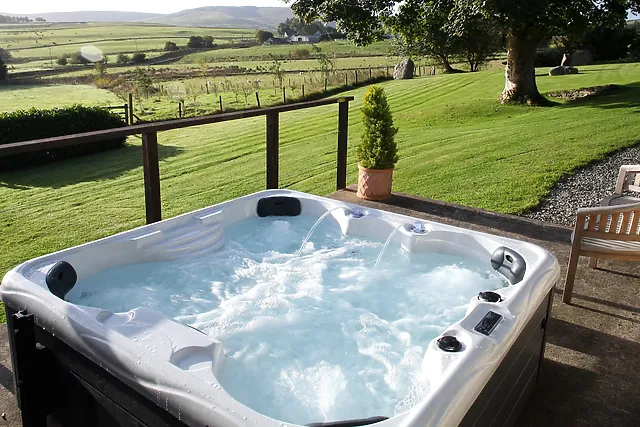 Yes, the accommodation includes a private hot tub, which is available for use until 10pm daily, providing an indulgent element to your stay.