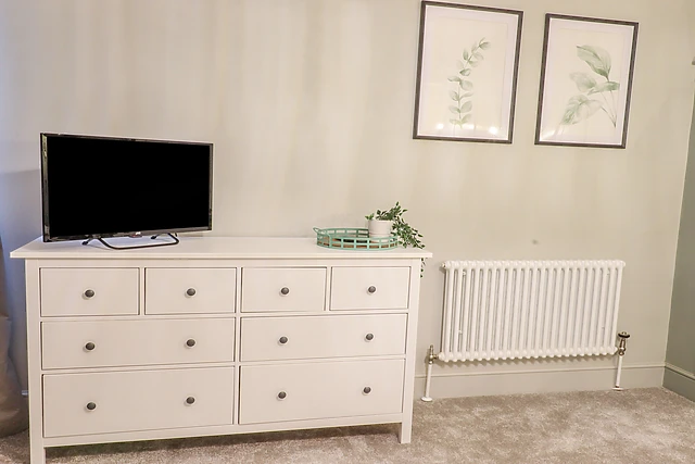 The accommodation boasts two beautifully decorated bedrooms, one with a king-size bed and the other with twin beds, comfortably sleeping four guests.