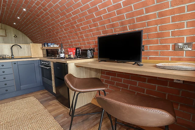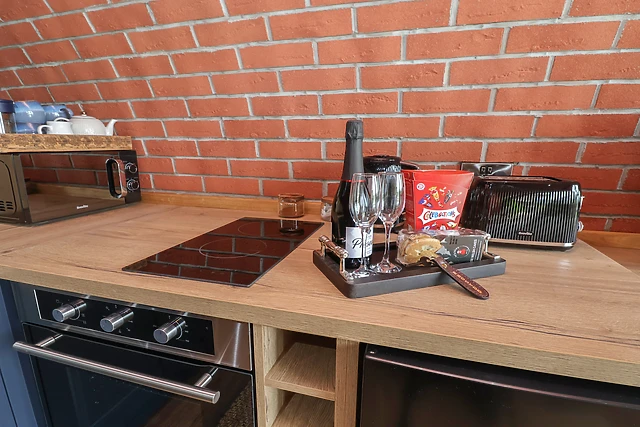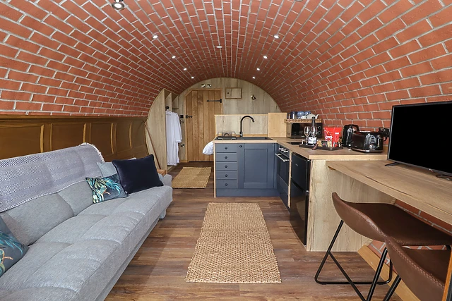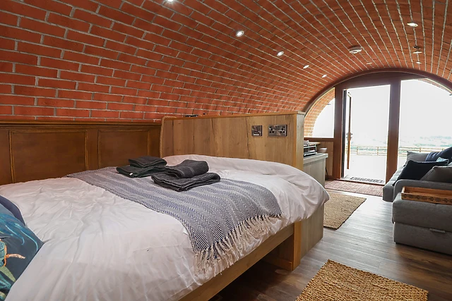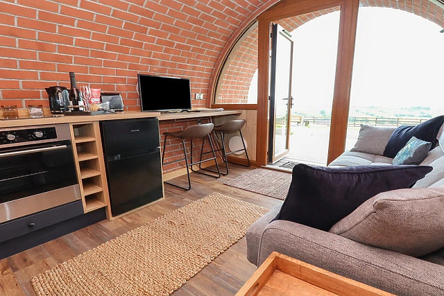 Unload your luggage and your stresses and walk up to the quirky pod which offers an oasis of calm. Step inside and the clever use of space is evident throughout with a sitting area with a sofa offering spectacular views from the floor-to-ceiling windows and next to this, a small but perfectly formed kitchen, which has an electric oven, a two-ring gas hob and a fridge/freezer, where you can whip up intimate meals for your loved one.
