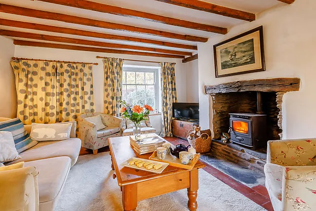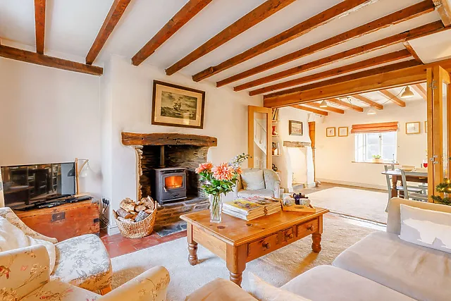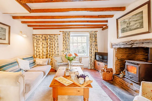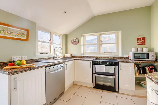 The cosy living area, complete with a Smart TV and wood burner, is ideal for relaxing evenings. Two charming bedrooms await upstairs, promising restful slumbers and delightful views.