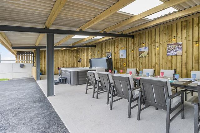 A spectacular barn conversion with stunning sea views, a private hot tub and an outdoor kitchen. Escape to this rural spot with your group of 12 and enjoy a getaway in North Wales exploring the coast and country.