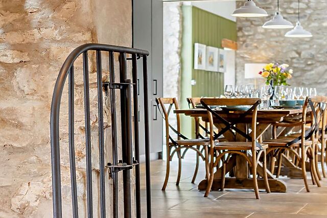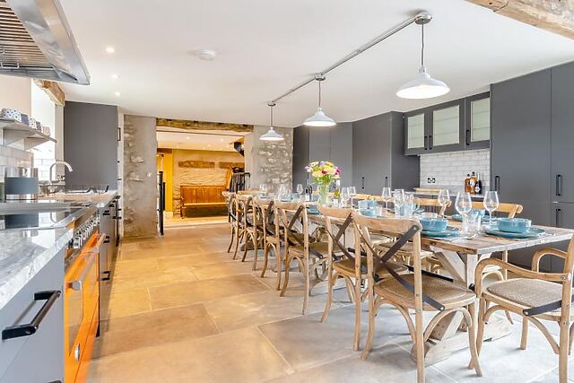 Set underneath exposed beams against stone walls, this is a sociable space with a warming wood burner to keep you toasty. Rustle up delicious meals for the guests in the beautifully crafted kitchen and then rest in the lounge space.