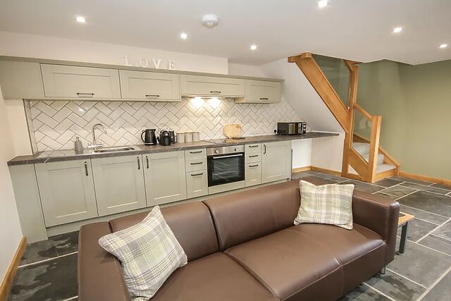 Sun Trevor Barn 1 is a fantastic two-bedroom barn conversion, nestled on the outskirts of Llangollen in Denbighshire. Enjoying a brilliant location with valley views from the private enclosed patio and an open-plan layout, Sun Trevor Barn 1 makes for an idyllic dwelling for a family of four or two couples and their furry friend to explore North Wales.